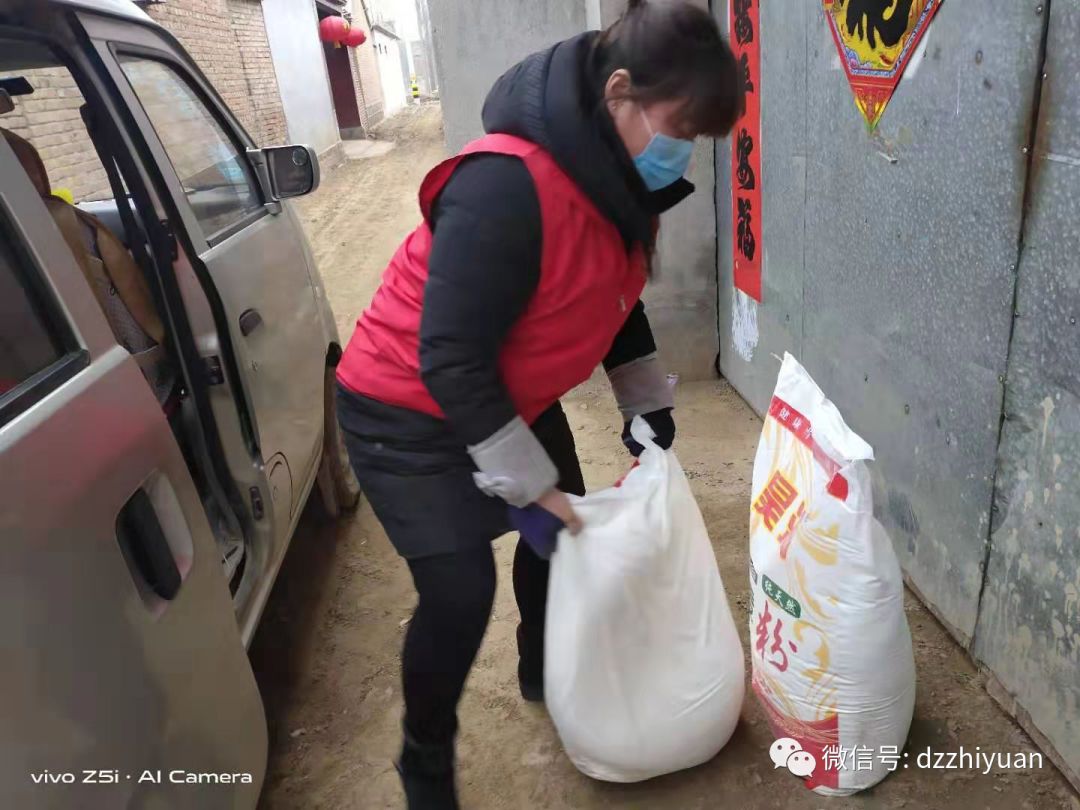 “兄弟,你家里需要的米面和鸡蛋我们已经买好了,就放在你家门口了,出来取一下吧……!”2020年2月2日下午3点左右,武城镇大邢王庄村党支部书记邢立芹为该村刘忠辉一家送来了委托采购的物品,结束了此次“代购”工作。