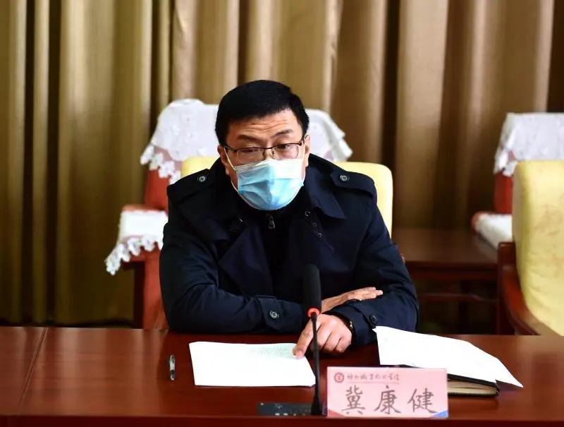 招生就业指导处处长冀康健分析了本年度我校面临的招生工作形势,就2020年山东省深化高等学校考试招生综合改革试点工作进行了深度解读。他围绕学校《2020年招生工作方案》的各项变化情况进行了说明,明确2020年学校计划招生6500人,其中普通高职、预备技师5900人;五年一贯制大专600人。各部门、各单位要结合今年高考改革的新变化,力争招生工作新成绩。