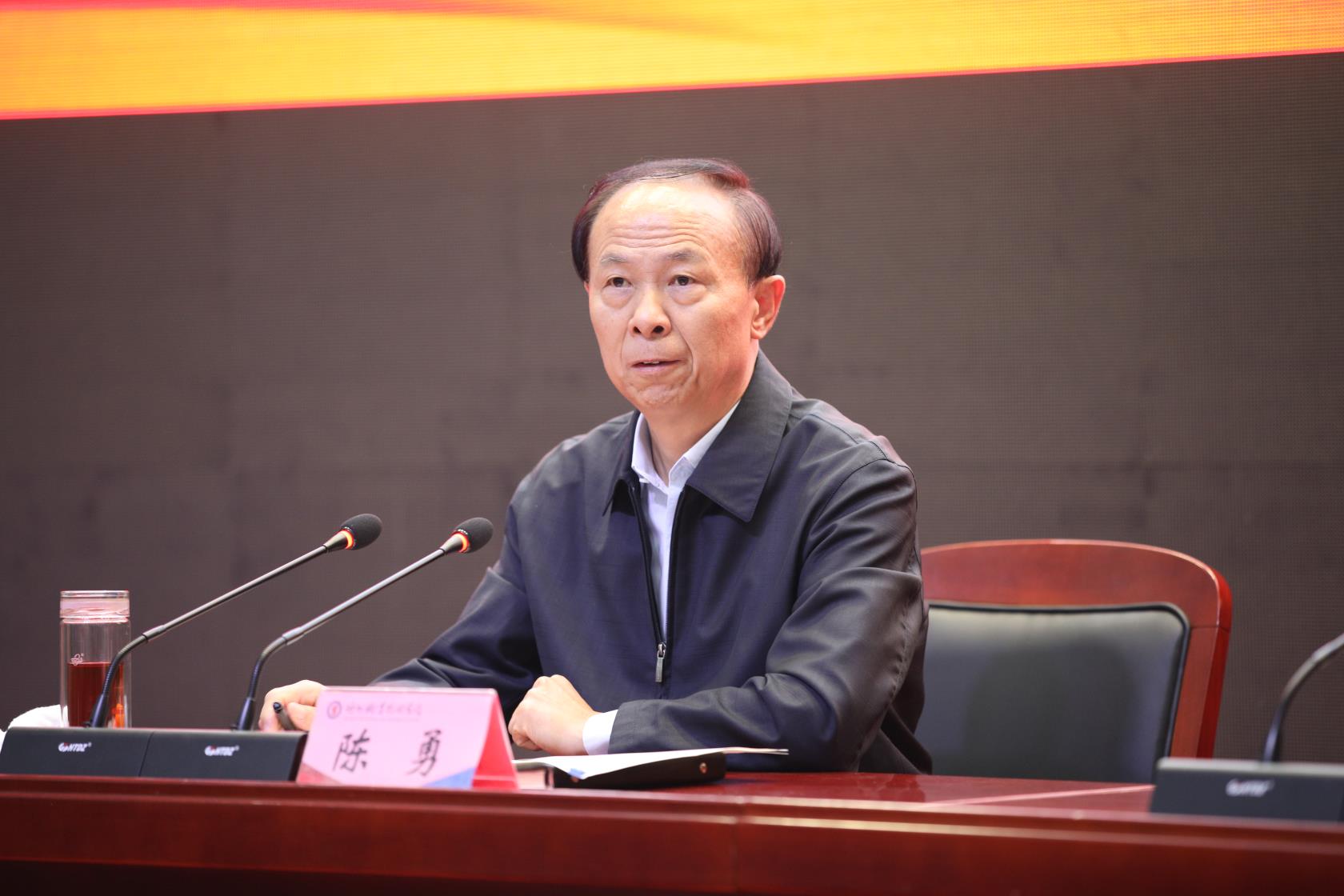 12月4日,德州市委书记陈勇来我校宣讲党的十九届四中全会精神。市委常委、组织部长赵艺丁,德城区委书记巩洪波出席活动;市委办、政研室、行政审批服务局主要负责同志,市委机关第一党支部、德城区黄河涯镇焦庄社区党员和群众代表,校领导张恒斌、陈章侠、张苹、郭士武、周爱红,全校党员干部和师生代表参加宣讲会。校党委书记樊兆杰主持。