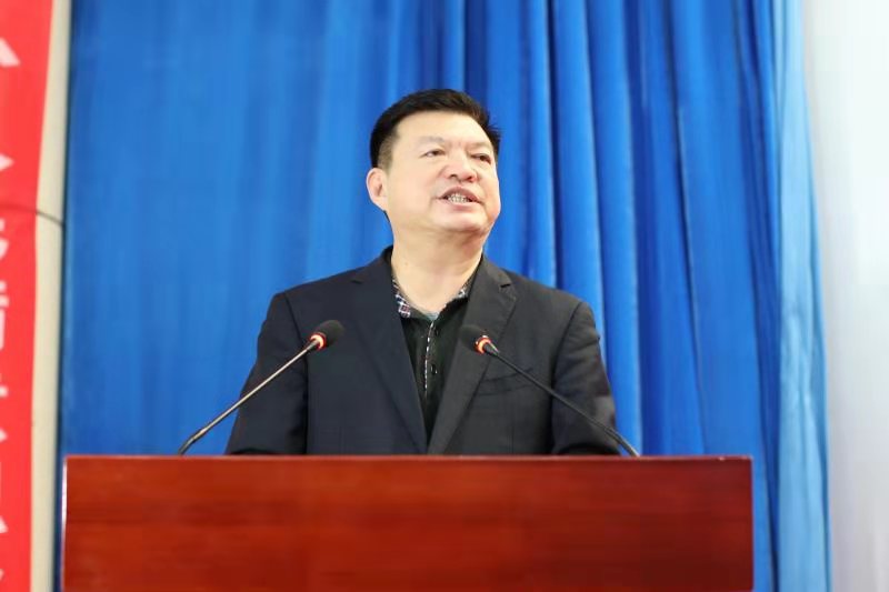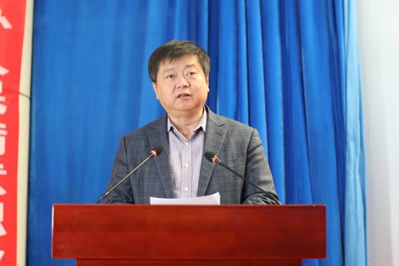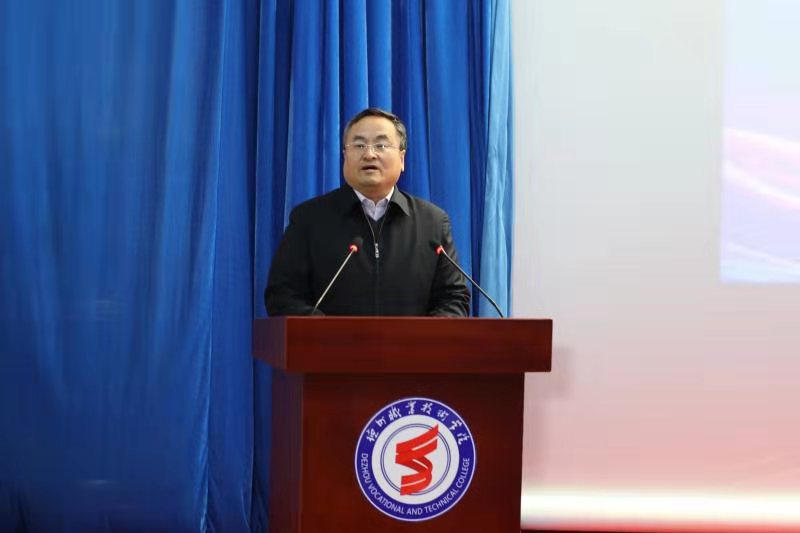 校党委书记樊兆杰致辞。他指出,老龄产业学院实训基地落成,是我校与北京优护万家养老服务集团深入推进全面战略合作的一件大事,也是深化产教融合、校企合作的重要举措,标志着校企命运共同体建设迈上新的台阶。