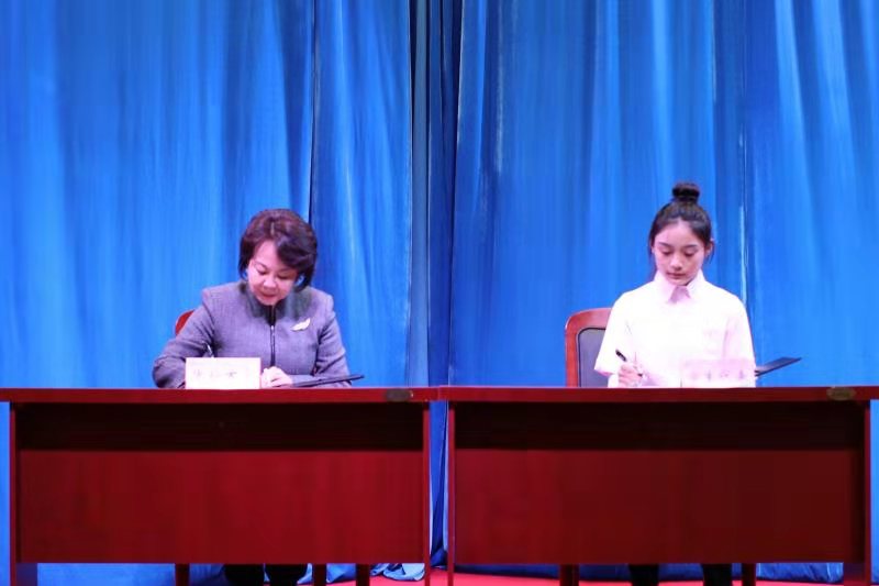 仪式上,李淑华、曹健对实训基地的落成表示祝贺,就实训基地建设、人才培养等提出要求,并分别为我校老龄产业学院实训基地、北京优护万家德州社区养老服务中心揭牌。企业方介绍了老年服务与管理专业校企合作项目情况。我校老年服务与管理专业学生进行新生代养老人宣誓。我校2019级老年服务与管理专业学生代表与段萱签订就业协议。