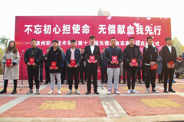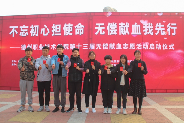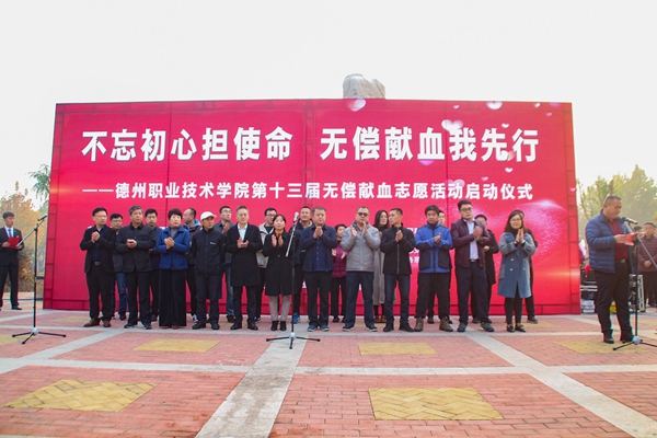 11月8日上午,“不忘初心担使命,无偿献血我先行”暨第十三届无偿献血志愿活动在我校隆重举行。校党委委员、办公室主任郭士武,机关党总支书记张维杰,德州市中心血站站长助理张晓云,各系党总支书记、学生科科长、副科长、献血教职工及1000余名学生志愿者参加活动,学生处处长刘宏杰主持启动仪式。