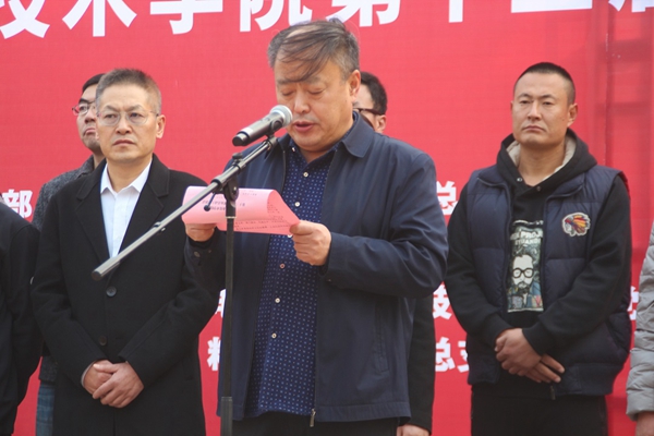 郭士武在启动仪式讲话,他指出,无偿献血作为一项崇高的社会公益事业,是中华民族无私奉献、救死扶伤的高尚人道主义行为,是人道、奉献、博爱的红十字精神的体现,是构建和谐社会的重要组成部分,我校向来重视该项工作,自2007年至今,参与献血者已达4044人次,累计献血总量达到了945140毫升。目前,无偿献血活动已成为我校师生自觉践行社会主义核心价值观,弘扬爱国主义、人道主义精神的品牌活动,多次受到省、市表彰。自2016年以来,我校连续荣获全省“无偿献血先进高校”、全省高校“无偿献血志愿服务队先进集体”荣誉称号,多名同志被评为“省高校无偿献血工作先进个人”。2018年,陈晓倩等25名同学被授予“山东省无偿献血爱心大学生”荣誉称号。