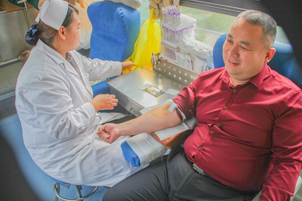 仪式结束后,学生处处长刘宏杰同志发挥党员模范带头作用,以实际行动践行“不忘初心、牢记使命”主题教育宗旨,第一个登上献血车献出自己的一份爱心。