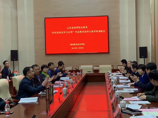 11月9日,山东省光伏发电技术与应用专业教学指导方案评审论证会在我校润德楼八楼视频会议室召开。以山东职业学院副院长祝瑞花为组长的专家组一行九人出席会议并对指导方案进行了论证。我校教学分管院长陈章侠、教务处处长殷淑英及新能源技术工程系全体教师参加论证会。