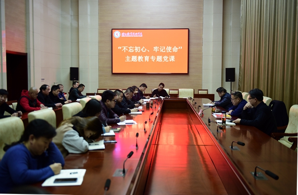 根据“不忘初心、牢记使命”主题教育工作安排,11月19日,校党委委员、办公室主任郭士武以“践行初心,牢记使命,努力提升学生管理及安全工作水平”为题讲了专题党课。办公室、学生处、团委、保卫处全体党员参加学习。