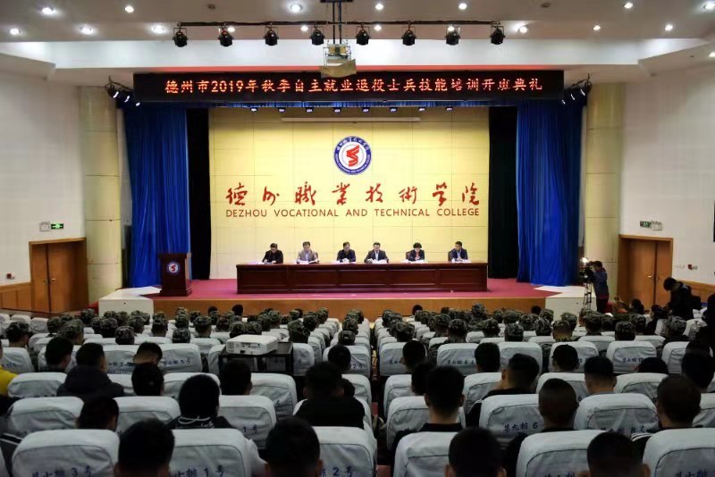 10月28日上午,德州市2019年秋季自主就业退役士兵技能培训班在我校举行开班仪式。德州市退役军人事务局党组书记、局长孟祥胜,副院长张苹,党委委员、宣传部部长周吉星,齐鲁晚报德州站站长、总编信明栋,德州宇通驾驶员培训有限公司执行校长魏红军,培训班教师与252名退役士兵参加仪式。继续教育学院党总支书记邱如华主持仪式。