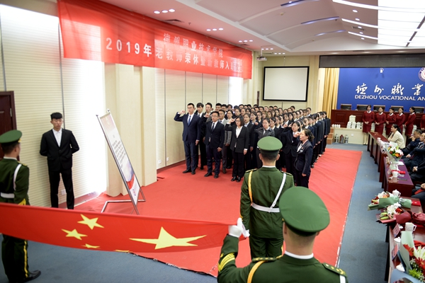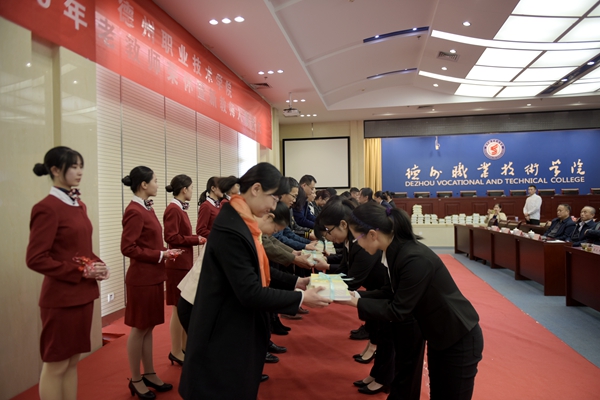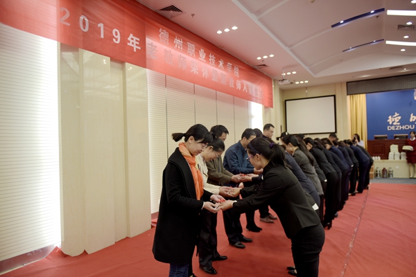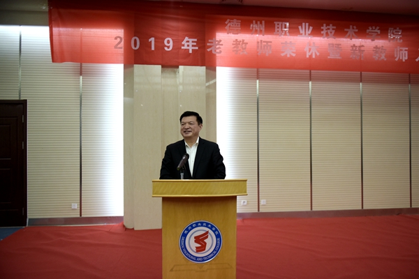 樊兆杰同志为退休教师颁发荣休证书佩戴红围巾。他代表学校党委,向为学校改革发展做出贡献的退休老师致以衷心的感谢,希望老教师能够一如既往地关心支持学校发展,积极为学校改革发展建言献策。他向新教师介绍了学校不平凡的发展历程和取得的优异成绩,要求新教师迅速转变角色,树立远大的目标,做好人生职业生涯规划,养成高尚师德,知难而进、迎难而上,担起立德树人的神圣责任,争当“四有”好老师,做好学生健康成长成才的引路人,培养德智体美劳全面发展的社会主义建设者和接班人,在德州职院这片沃土上施展才华、奉献青春、人生出彩。他强调,指导老师们一定要发挥传、帮、带作用,全心传授理论和技能,成为新教师看齐的表率。