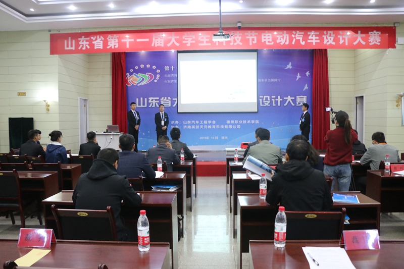山东省大学生电动汽车设计大赛,目的是锻炼当代大学生的创新思维和创业意识。大赛由山东省科学技术协会、山东省教育厅等单位主办,由山东省汽车工程学会,德州职业技术学院承办,济南英创天元教育科技有限公司协办。共有来自全省16家院校,68支队伍,204位选手参赛。比赛分现场演示和讲解答辩两个环节。