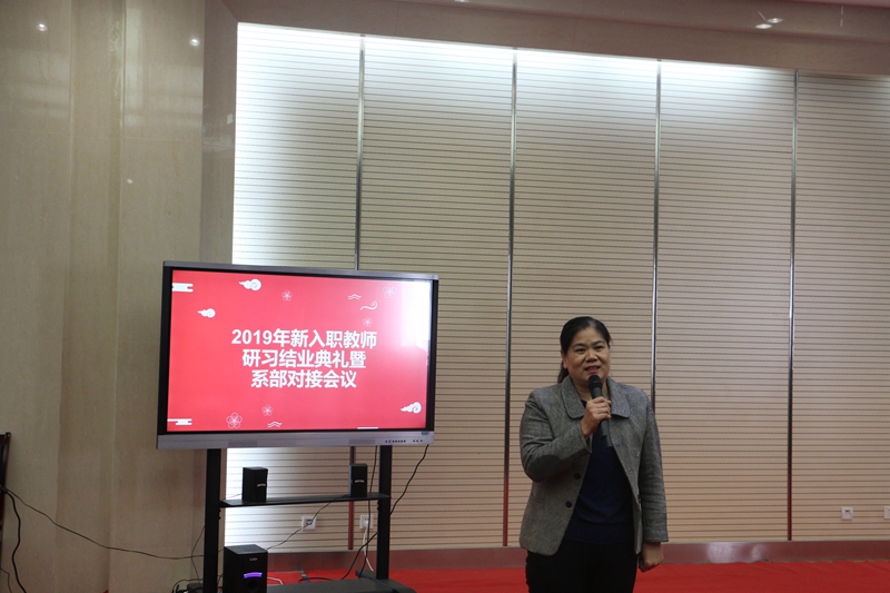10月29日上午,2019年新入职教师研习结业典礼暨系部对接会议在润德楼2楼会议厅举行,校党委委员、组织部部长周爱红出席并讲话,各系部相关度责人参加会议。