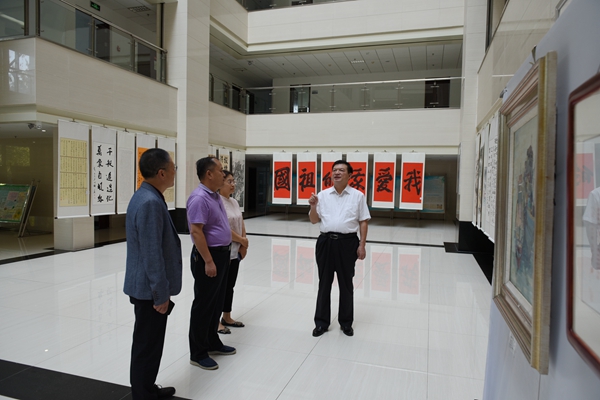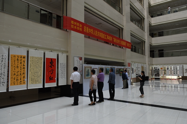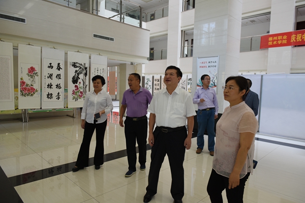 为庆祝中华人民共和国成立70周年,9月23日,我校纪委、工会、中国传统文化研究会、教职工书画协会联合主办的德州职业技术学院“颂伟大时代、为祖国喝彩”书画艺术展隆重开幕。校党委书记樊兆杰,副院长张苹,党委委员、办公室主任郭士武参观书画展。