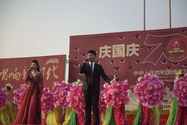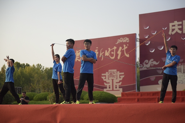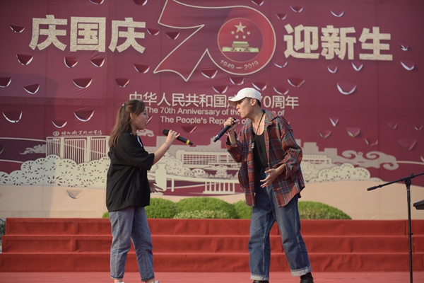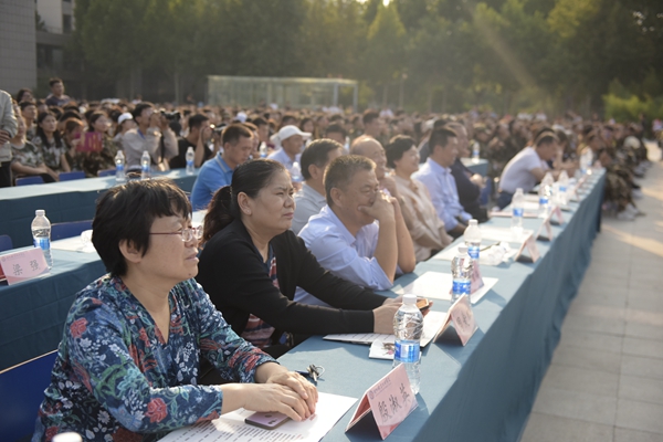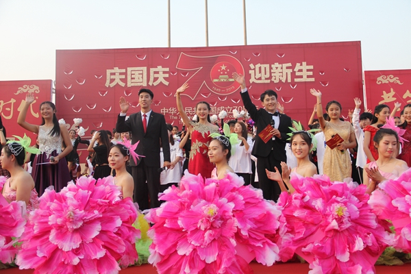 9月29日下午,我校2019年“唱响新时代,共筑中国梦 ”庆国庆迎新生文艺汇演在寰球广场隆重举行。校党委副书记、工会主席张恒斌,校党委委员、纪委书记李强,副院长陈章侠、副院长张苹,校党委委员、组织部部长周爱红及各处室、系部主要负责人,15000余名学生欢聚一堂,共同观看演出。