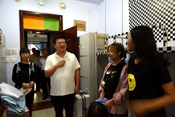 8月27日,校领导樊兆杰、张恒斌、李强、张苹、郭士武、周吉星亲临学生生活区,视察迎新工作。校领导先后来到各系新生接待点、宿舍和学生餐厅等地,就迎新现场布置、氛围营造、安全隐患防范、校园道路保障等进行了走访检查,并详细询问了各工作组的准备情况。樊兆杰指出,新生入学是学校的一件大事,各单位要明确责任分工和工作流程,把工作进一步做实做细,遇到问题及时反馈并尽快解决,努力给新生及其家长提供热情、周到、细致、贴心的优质服务,让新生和家长感受到学校的温暖。