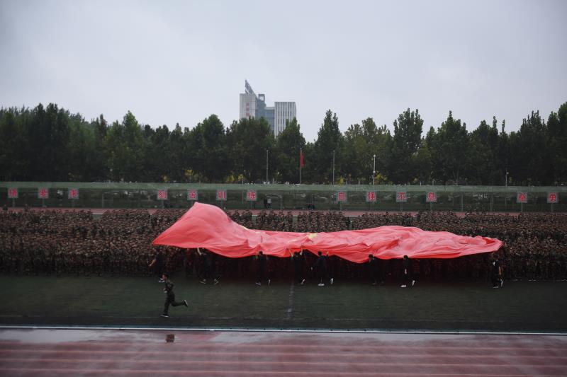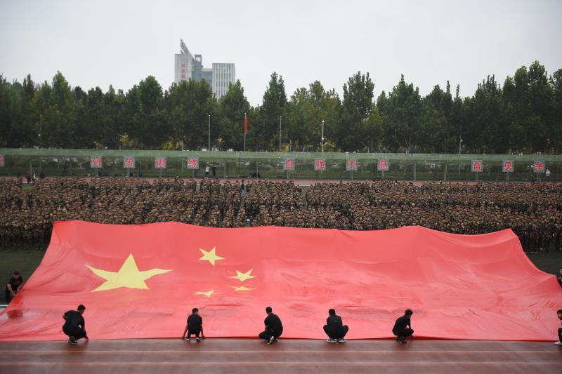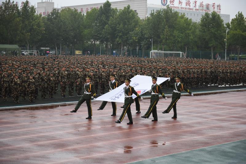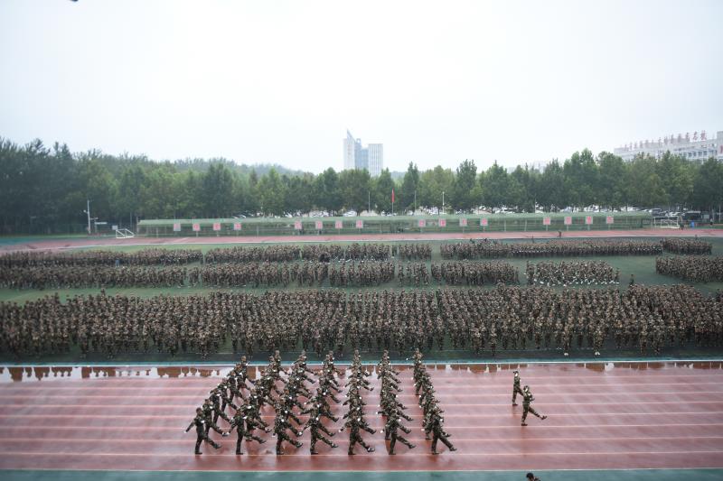 党委办公室主任郭士武宣布,德州职业技术学院2019级新生军训总结汇演开始。
