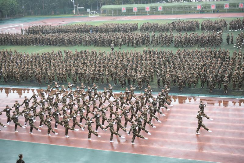 随着激昂的分列式进行曲,60个军训方队昂首阔步、英姿飒爽地走过主席台,稚气的脸上透着坚毅,是新生,更像老兵,军容严整、声音嘹亮、脚步铿锵,半个月的艰苦训练在他们脸上留下了成长的印记,充分展现了我校2019级学子自强不息的行健精神和敢于担当的青春风采;6个表演方队的军体拳表演声势浩大,步步生威、血性彪悍,仿佛把现场带到了硝烟弥漫、奋勇杀敌的战场,让敌人魂飞魄散,赢得在场师生阵阵掌声。