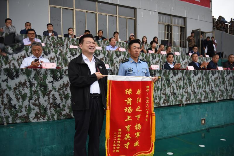 大会在庄严的国歌声中拉开帷幕。校党委书记樊兆杰向承训部队赠送锦旗,党委副书记、副院长李跃为乘训部队教官颁发荣誉证书。