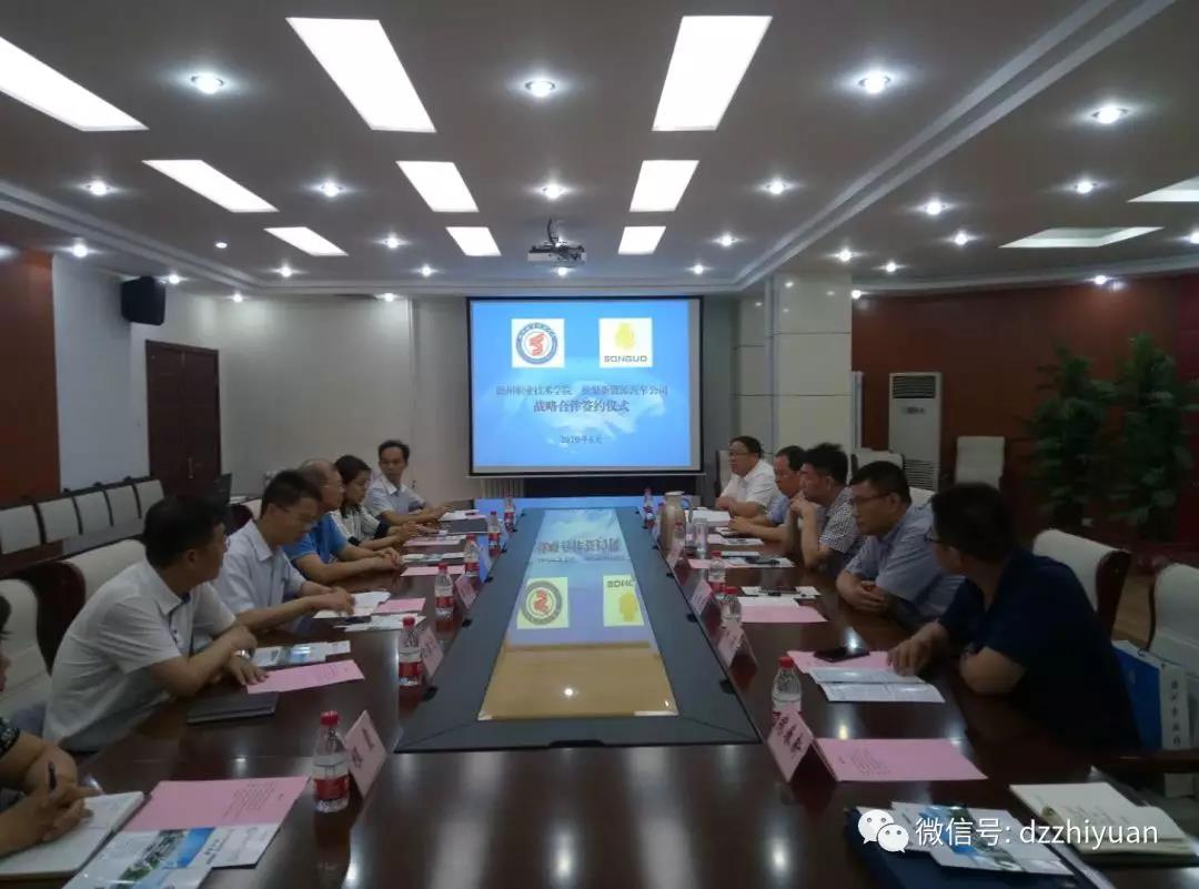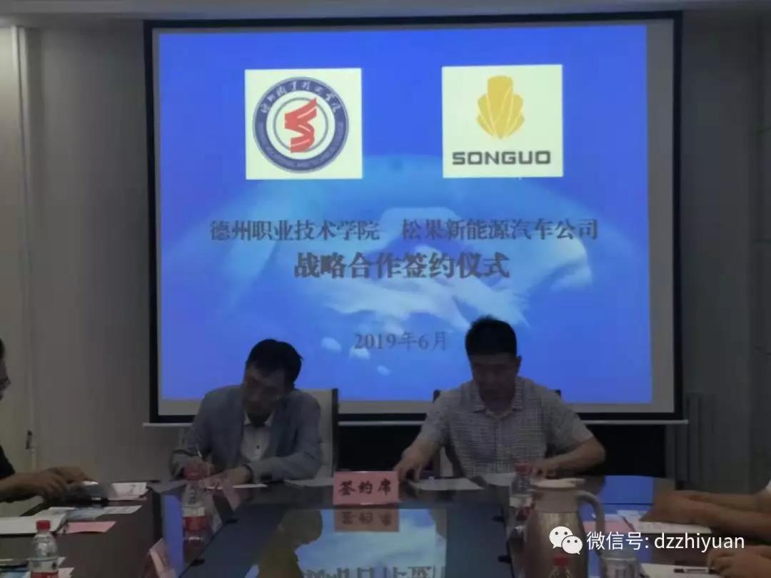 在李春厚的主持下,双方召开座谈会,就人才需求、技术服务、职工培训、专业建设、共同招生等工作进行了深入的沟通和交流,达成广泛共识。李建华与郑淳元共同签订了德州职业技术学院与松果新能源汽车有限公司战略合作协议。
