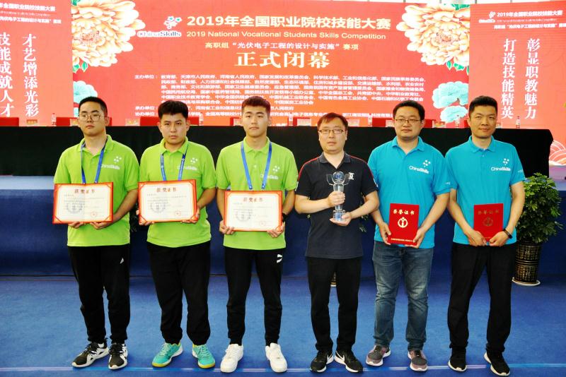 6月4日,2019年全国职业院校技能大赛高职组“光伏电子工程的设计与实施”赛项落下帷幕,我校新能源技术工程系选手首战告捷,喜获全国一等奖,总分第三名的好成绩。