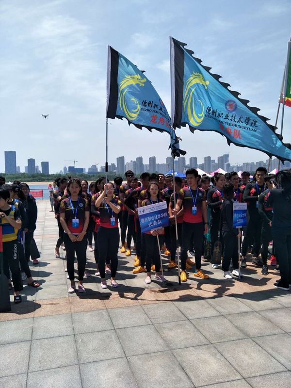 端午佳节、艾叶飘香,擂鼓震天、百舸争流。6月7日-8日2019年中国(日照)国民休闲水上运动会全国龙舟拔河公开赛暨“纵横江湖” 山东省龙舟大奖赛在奥林匹克水上公园龙舟码头广场正式开赛。共有来自济南、青岛、潍坊、临沂、德州、枣庄、日照、山东体育学院、青岛大学、青岛农业大学等地市及高校的32支代表队、近500名运动员参与龙舟竞渡,体验中国传统文化。德州职业技术学院龙舟队代表德州参加了本次比赛。