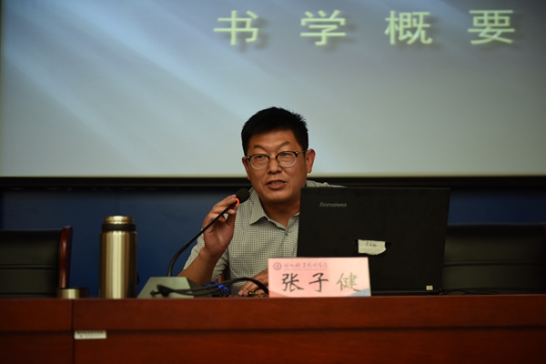 5月16日下午,我校邀请了中国书法家协会会员、德州市书协副主席、我校校友张子健先生来润德楼二楼会议厅召开书法知识讲座。学校工会负责人、校中国传统文化研究会、教职工书画协会会员及我校书画爱好者参加了讲座,校党委委员、纪委书记、校教职工书画协会名誉会长李强主持讲座。