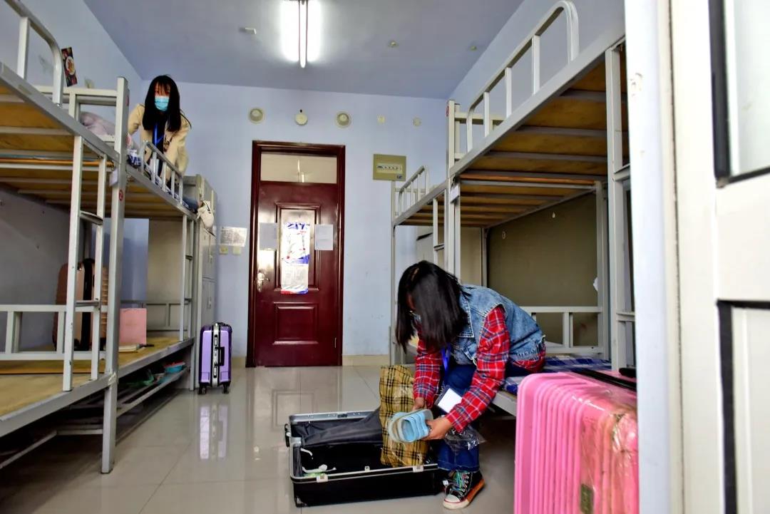 学生进入宿舍。