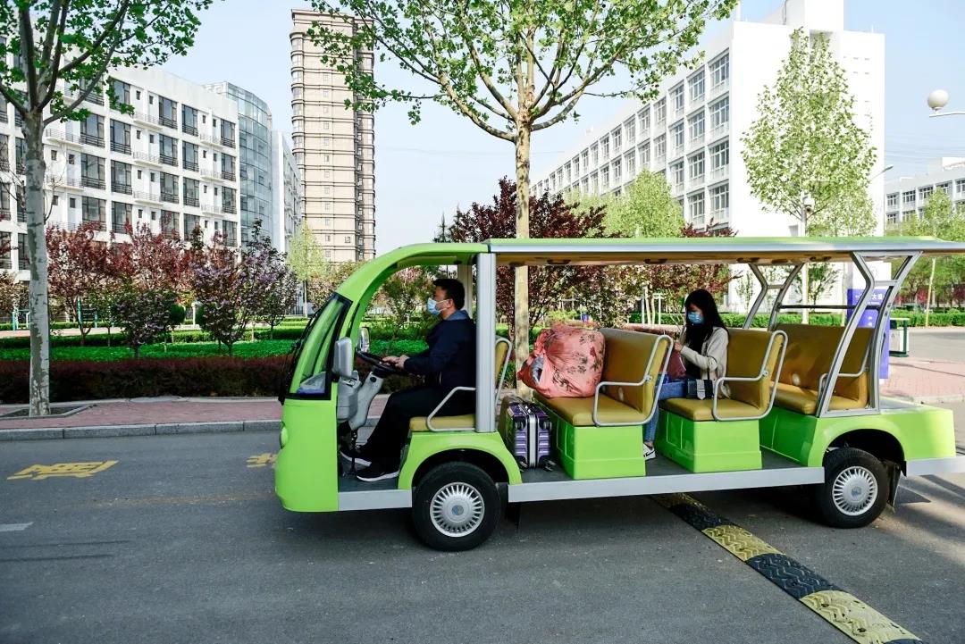 学校安排专车,送学生到宿舍。