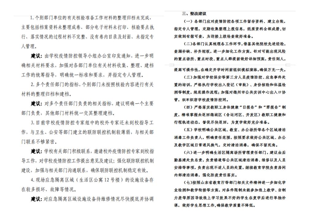 5月26日,督导检查组在向校领导汇报时,建议“在全校范围内推广使用电气工程系开发的网上订餐小程序,实行网上集中订餐,线下统一配送,减少人员集聚……”原来这是督导检查组在对学生食堂就餐检查时,了解到电气工程系通过“网上餐厅”系统,能有效缓解学生拥挤、打饭秩序混乱等问题,于是第一时间向学校建议。在疫情防控常态化背景下,为全省解决学生聚集性就餐问题提供了“德职方案”。类似这样的意见建议,经常出现在督导督查组的意见建议中,对相关责任部门的问题整改起到积极的推动作用,为推进学校内部治理体系和治理能力现代化做出了贡献。