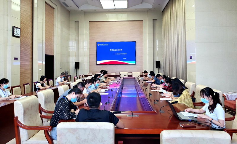 为落实市委宣传部关于加强重要舆情信息报送工作部署,进一步完善学校思想政治和意识形态工作体系,以优异成绩通过全市2020年度绩效考核,6月18日,我校在润德楼视频会议室召开舆情信息报送工作培训会。校党委宣传部主要负责同志及相关工作人员,各行政处室、系部舆情联络信息员参加培训。