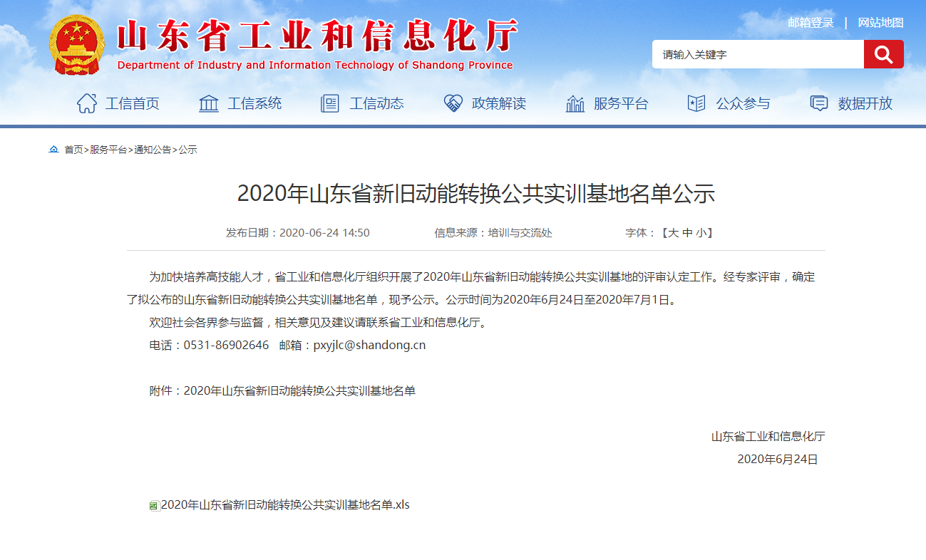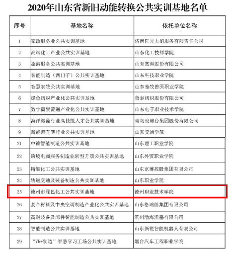 近日,山东省工业和信息化厅公示了2020年山东省新旧动能转换公共实训基地名单,我校申报的德州市绿色化工公共实训基地获评审认定。