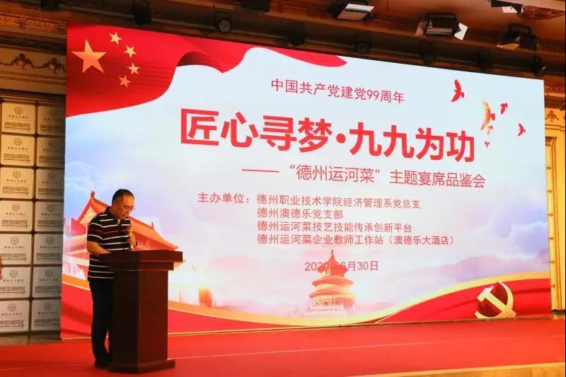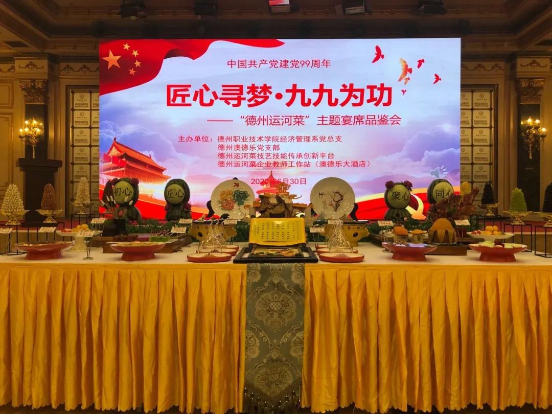 6月30日,经济管理系党总支、德州运河菜技艺技能传承创新平台联合澳德乐党支部,在澳德乐大酒店举办“匠心寻梦•久久为功”主题宴会,讴歌党、新讴歌时代,激励党员弘扬传统文化、传承技艺技能、在新时代建功立业。