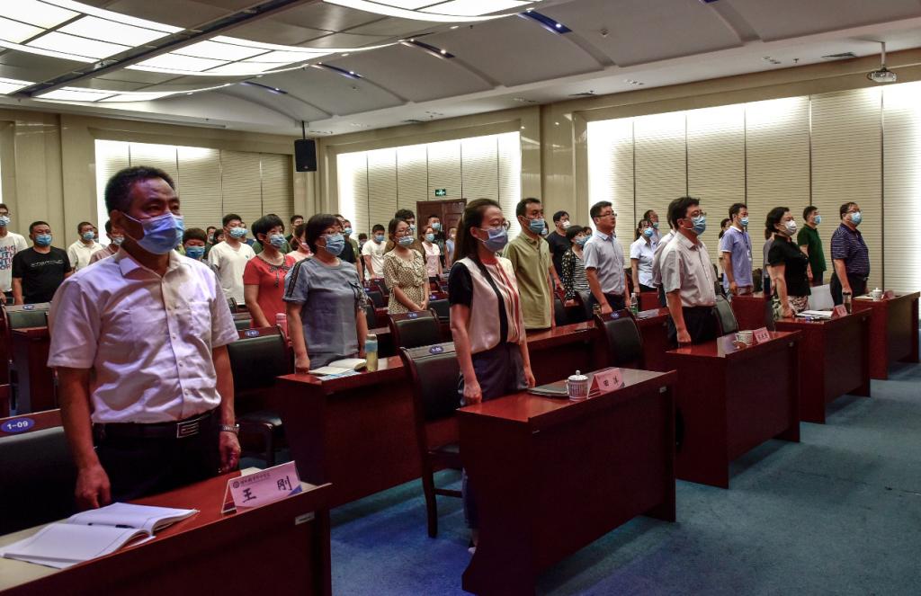 7月17日上午9点,山东省农村和城市社区基层干部学历教育2020届毕业典礼暨2019级开班式采用视频直播方式,全省统一举办,德州分会场设在德州职业技术学院,德州市委组织部副部长陈廷国,德州职业技术学院副院长张苹,德州职业技术学院党委委员、组织部(人事处)部长(处长)孟繁营,德州市基层干部学历教育直属班2020届毕业生、2019级学员,继续教育学院科级以上干部近百人参加。