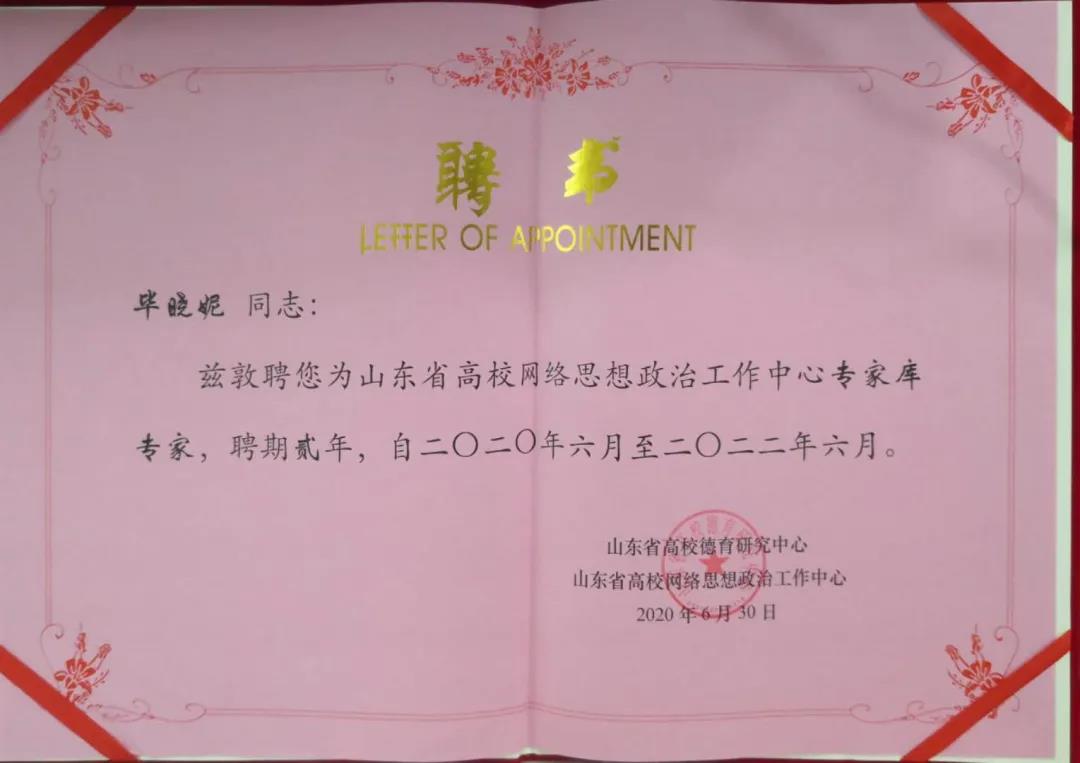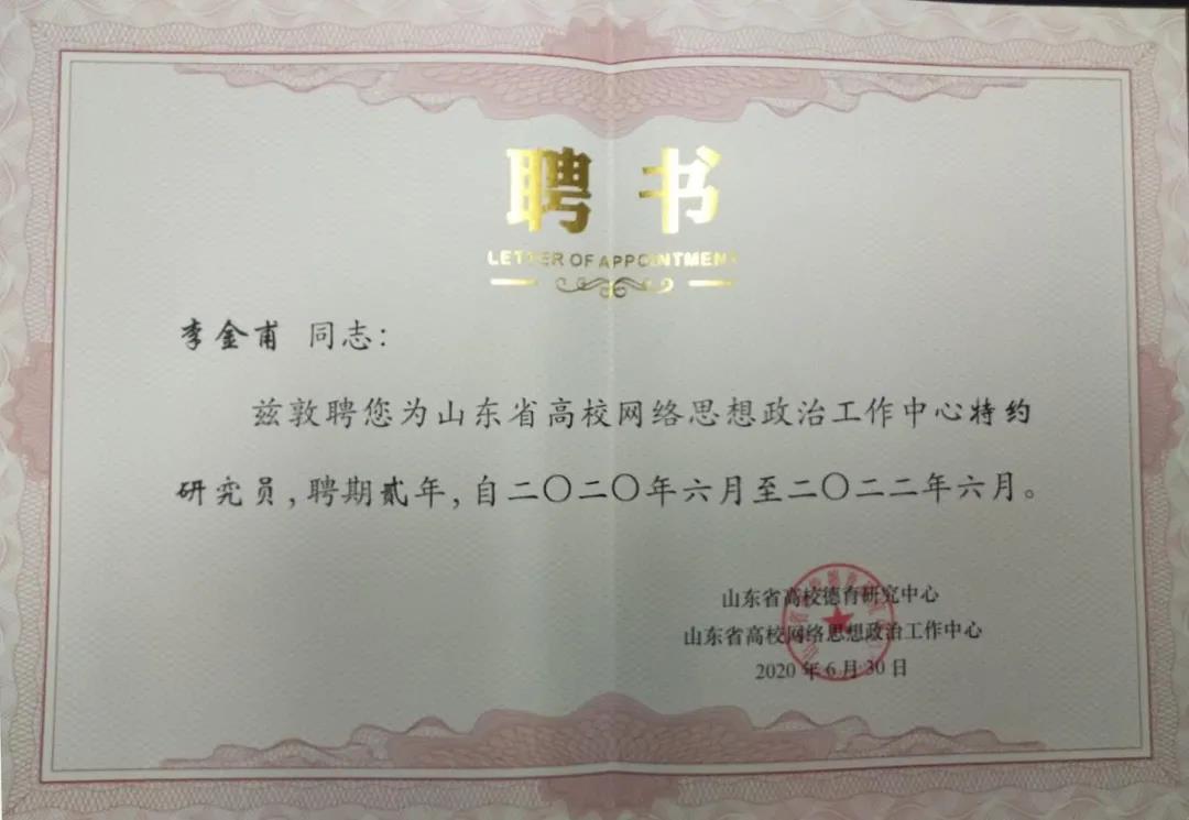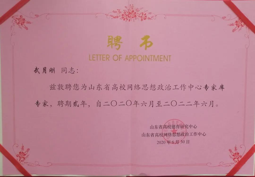 为加快推进山东省高校网络思想政治工作中心建设,发挥好贯通上下、联通左右、引领助推和参谋智库作用,推动形成全省高校的网络育人合力,全面加强新时代高校思想政治工作,经上级主管部门同意,4月份,该中心启动专家库专家和特约研究员评选工作。该中心专家库专家和特约研究员由全省公办高等院校推荐,在网络意识形态、网络思政、网络舆情、网络文化等领域,有一定研究专长的专家中产生,聘期为两年,承担着开展网络意识形态、网络思政、网络舆情、网络文化等领域研究的职责。