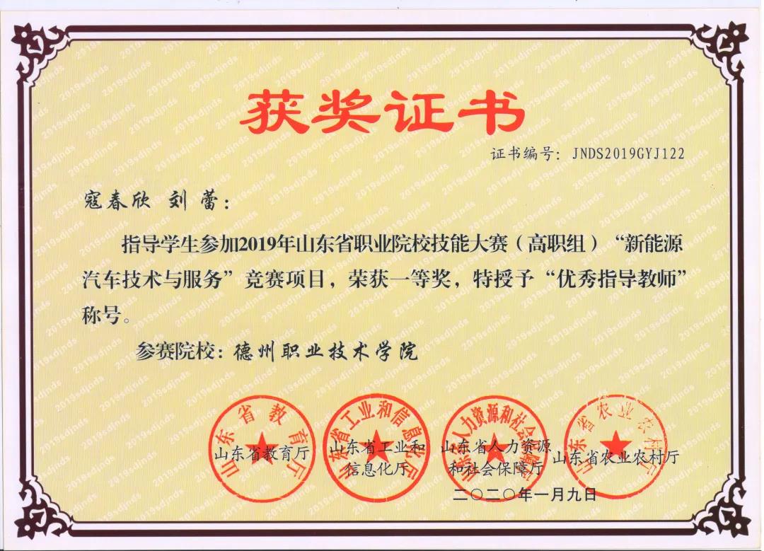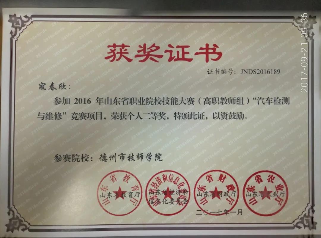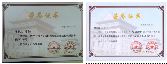 寇春欣,男,汉族,33岁,德州职业技术学院汽车工程系汽车运用与维修技术专业专任教师,汽车维修高级技师,2008年毕业于哈尔滨工业大学,获得本科学历,工学学士学位,2014年毕业于齐鲁工业大学,获得硕士学位。近三年主要教授课程《汽车故障诊断技术》等5门,参与编辑出版教材5部,指导学生获国赛二等奖2项,获省级比赛一等奖2项、二等奖1项,被教育厅授予“优秀指导教师”荣誉称号,被中国机械行业教学指导委员会授予“优秀指导教师”称号,被山东省科协授予“优秀科技创新导师”荣誉称号。