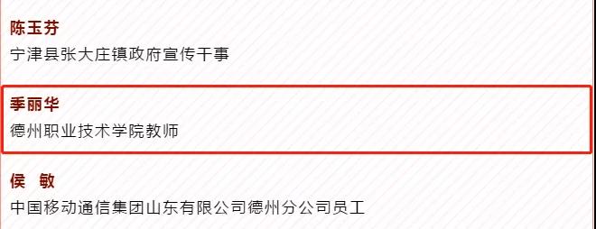 7月28日,德州“最美兵妈妈”“最美军嫂”评选结果公示,德州职业技术学院教师季丽华榜上有名,荣获德州“最美军嫂”荣誉称号。