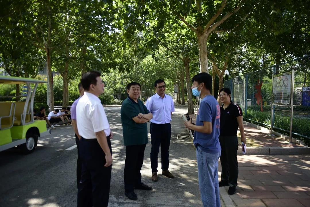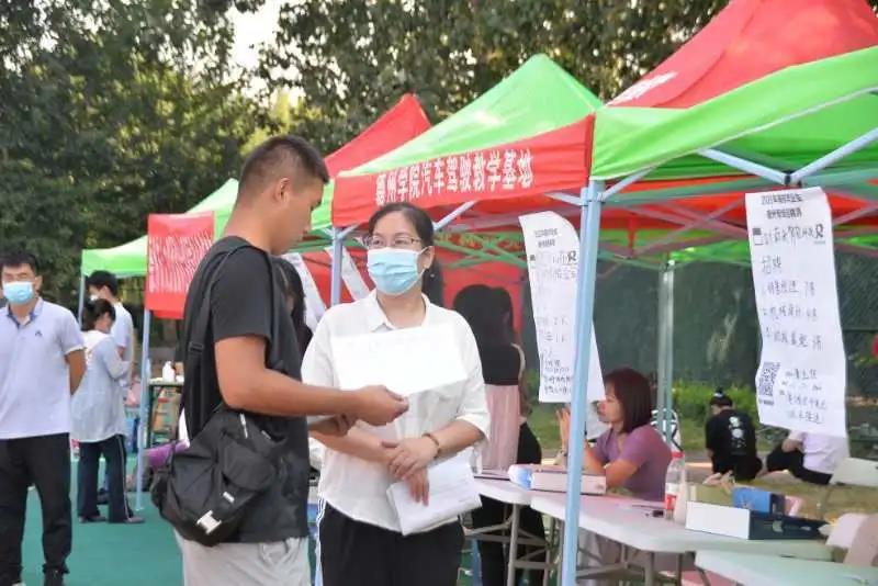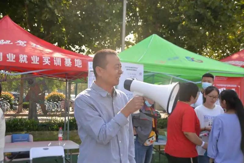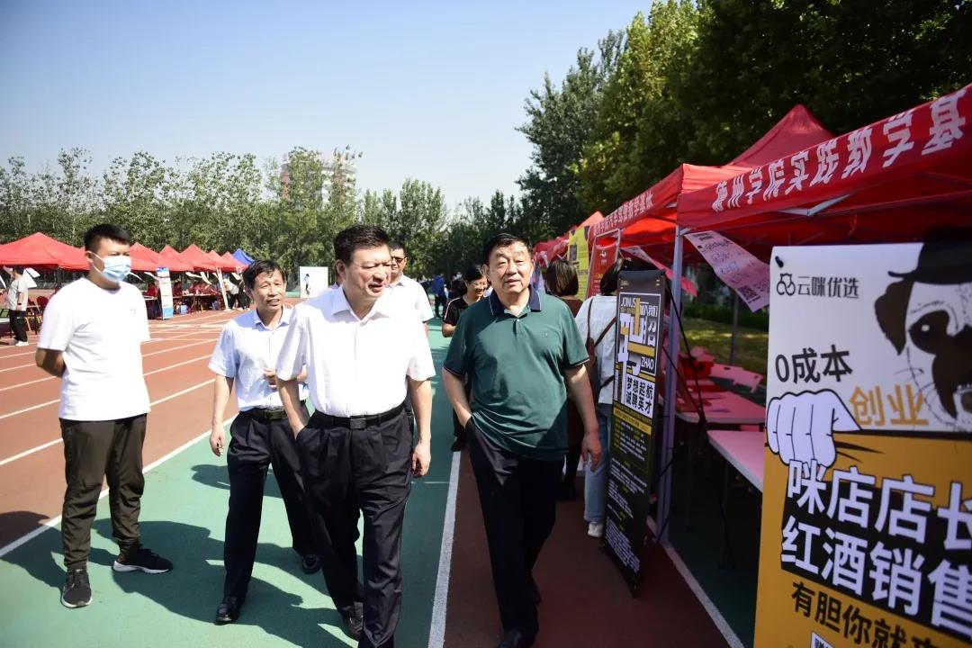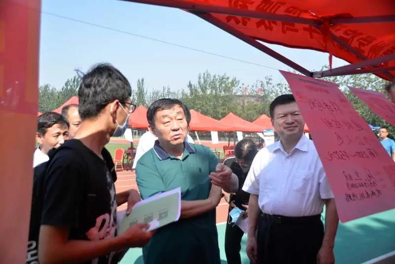 9月5日,由德州市人社局主办、德州职业技术学院承办的2020年德州高校毕业生专场招聘月户外现场招聘会第三场在学校体育场举办。校党委书记樊兆杰,德州市人社局局长何连生,德州市人社局副局长桑青,校党委委员、办公室主任郭士武到招聘会现场指导。