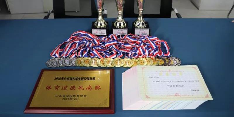 在2020年山东省大学生田径锦标赛暨第十四届全国学生运动会田径项目测试赛上,该校田径队经过四天的激烈角逐再获佳绩,以10枚金牌、5枚银牌、4枚铜牌、2个第四名、2个第五名、3个第六名、6个第七名、1个第八名的战绩,获得乙组女子团体总分第一名、男子团体总分第三名、男女团体总分第二名的突破性成绩(金牌总数第一名),并获体育道德风尚奖。聂倩文,马文晴,刘贺、董晓聪荣获优秀运动员称号,徐建老师获评优秀教练员。