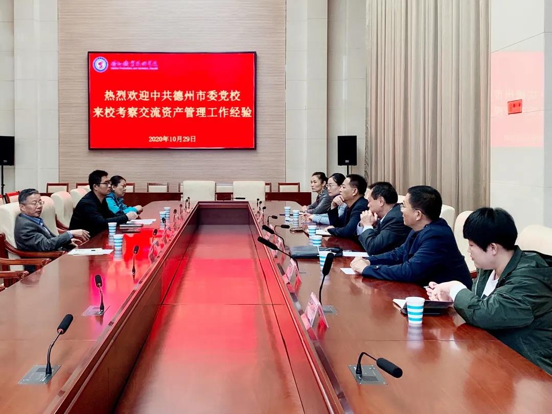 10月29日上午,中共德州市委党校校委委员、副校长刘健带领资产、后勤、财务等工作负责同志一行六人来我校就资产管理工作进行学习考察交流。我校党委委员、副院长多建民及资产管理工作负责同志在润德楼八楼视频会议室热情接待了市委党校学习考察组一行。