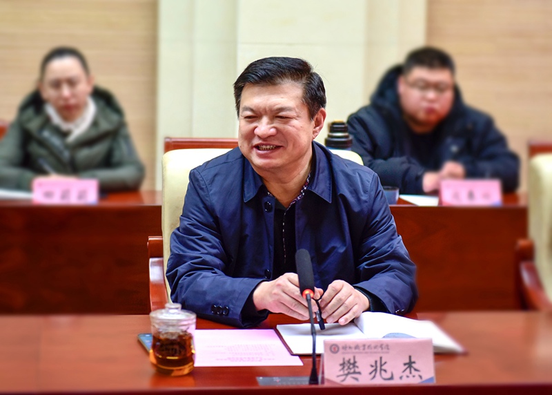 樊兆杰向企业来宾表示欢迎,并向来宾介绍了学校办学理念、办学特色、专业设置、师资力量等基本情况。