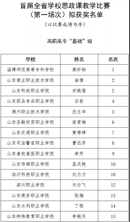日前,山东省教育厅举办了首届全省学校思想政治理论课教学比赛,我校沈兰华老师在高职高专“基础”组的成绩位居第5名,喜获特等奖。