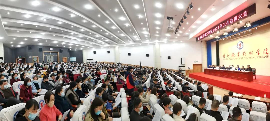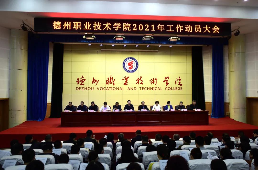 3月24日下午,德州职院召开2021年工作动员大会。校党委书记樊兆杰全面部署年度重点工作任务。院长张同光主持会议。校领导张恒斌、张苹、周爱红、殷淑英、聂长义、多建民、郭士武、周吉星、孟繁营出席。