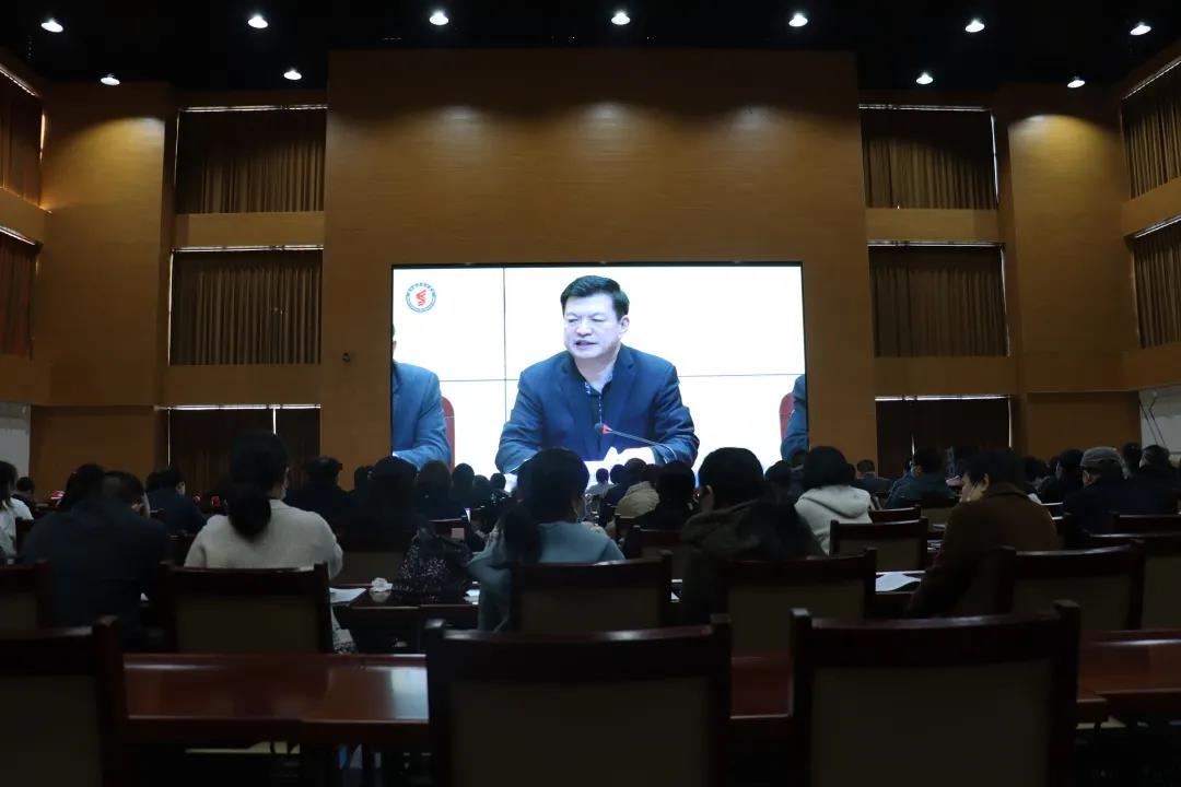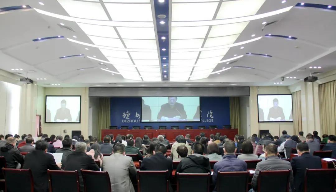 会议设主会场和分会场,校领导班子成员、副县级以上干部及部分系部教职工参加主会场会议,分会场教职工以视频形式收看线上直播。