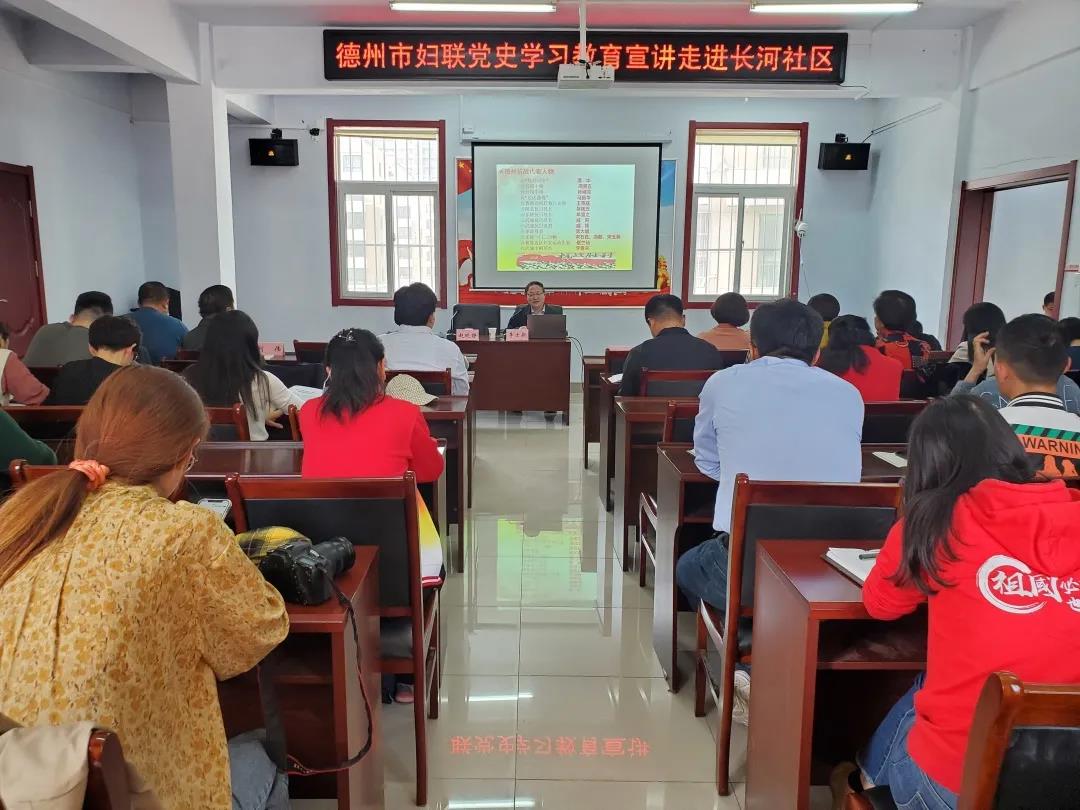 在樊兆杰同志的带动下,为更好推动创城服务活动,创新“党员活动日”开展形式,扎实开展党史学习教育,5月8日下午,我校党政办公室党支部组织教师党员到长河社区参加党史学习教育宣讲会,听取中共德州市委党史研究院(市地方史志研究院)院长李士新所作的讲座。