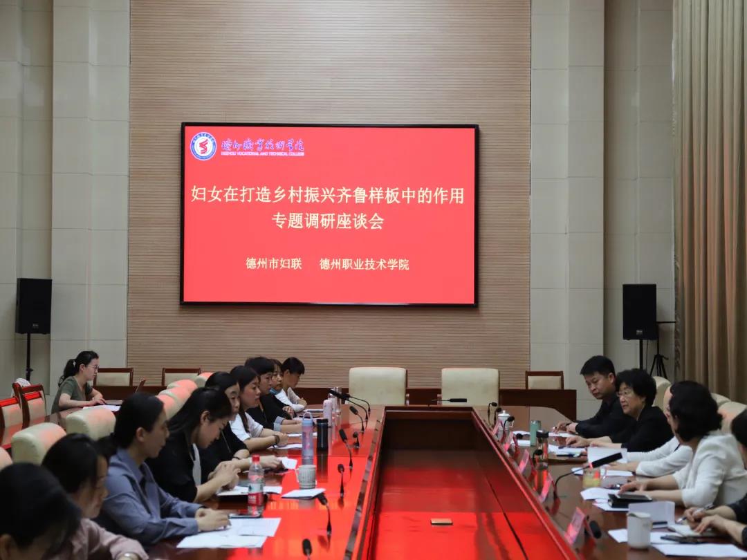 近日,“妇女在打造乡村振兴齐鲁样板中的作用”专题调研座谈会在德州职业技术学院召开,德州市妇联党组书记、主席赵晓静,市妇联党组成员、副主席王万英,德州职业技术学院党委委员、工会主席周爱红出席座谈会。德州职业技术学院副院长张苹主持。在德州职业技术学院面授集训的德州市2020级农村和城市社区基层干部专科学历教育班学员代表十余人参加座谈会。