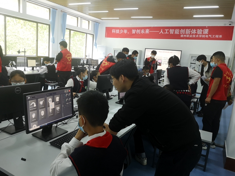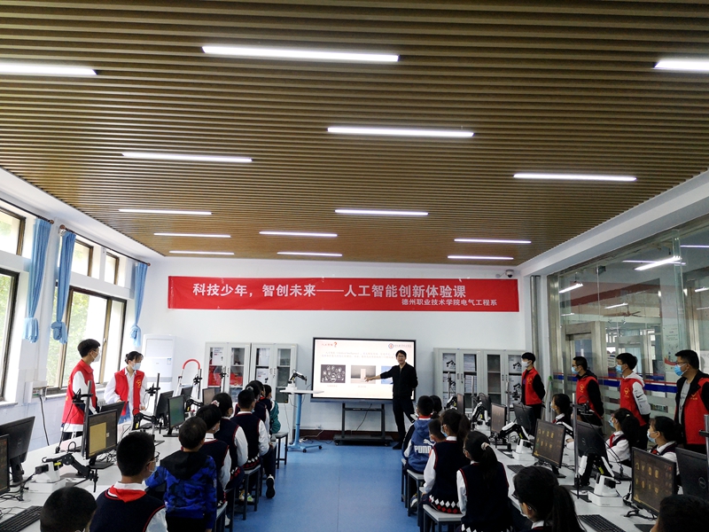 为进一步加强德州职院与中小学研学实践合作交流,切实为中小学生研学提供优质服务,5月16日上午,电气工程系迎来建设街小学五年级优秀学生,体验人工智能创新课程。