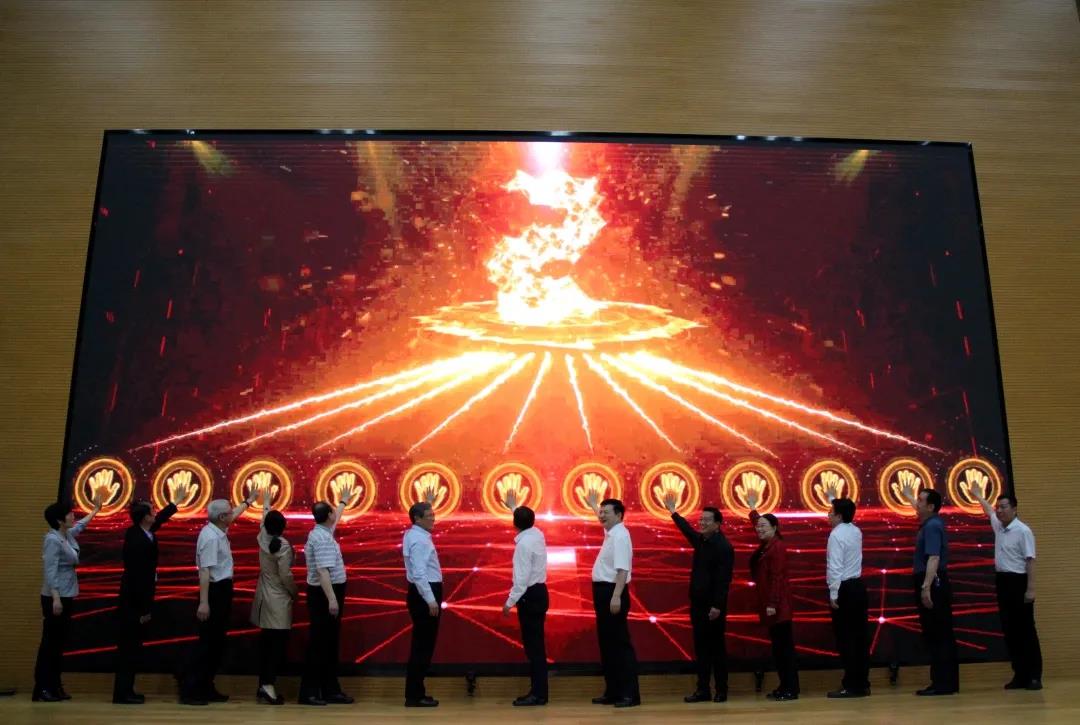 仪式上,与会领导共同上台,手触大屏幕启动职教活动周活动