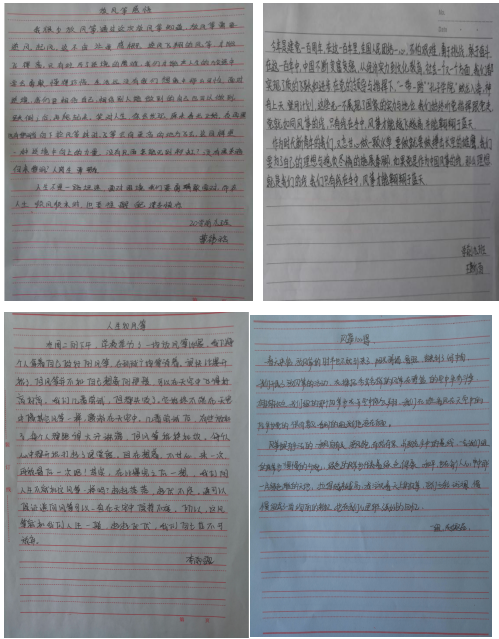 在这一阶段,同学们齐聚田径运动场,将自己制作的风筝摆放在眼前,寻找一个比较舒服的姿势坐下,眼睛直视风筝,让思绪轻轻地停留在上面,让自己的内心变得平静,思考“风筝”带给生活的启示,规划人生发展方向,构建未来生活的蓝天。最后一个环节,同学们以《人生如风筝》为题,以书面形式分享感受,进一步明确活动的意义,深化此次主题教育活动对学生自身的影响。