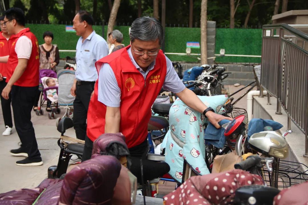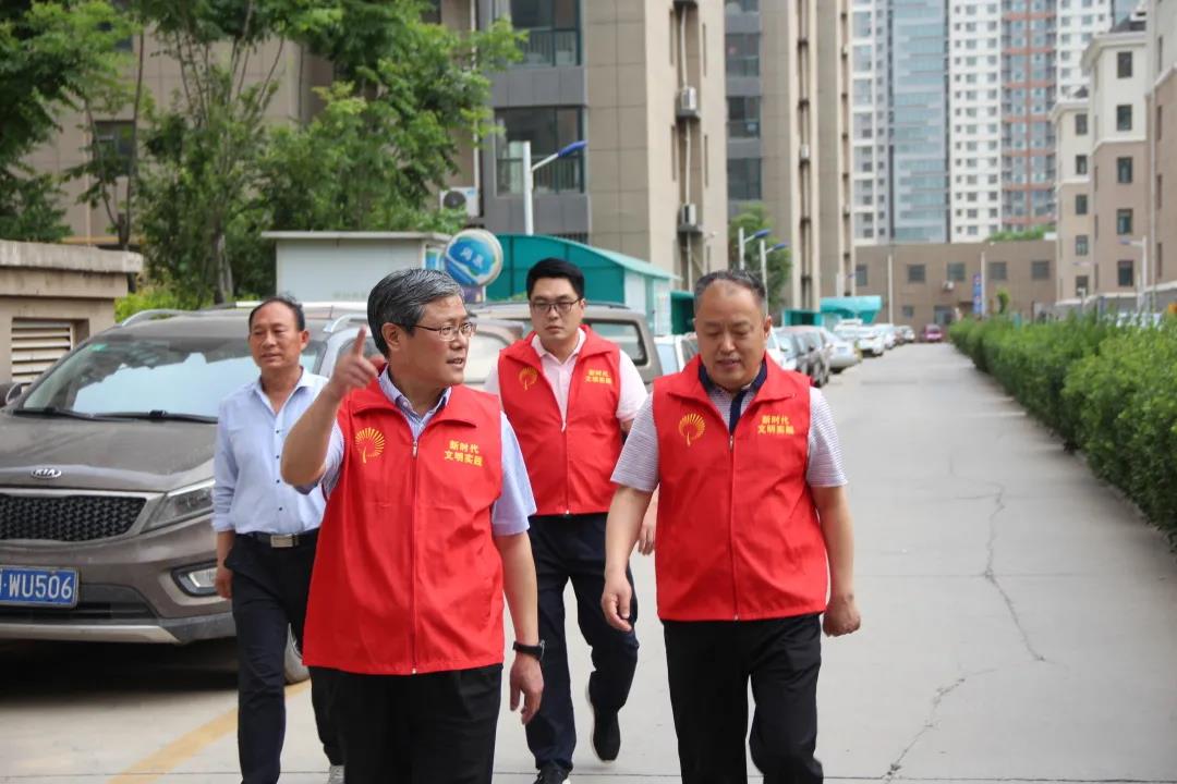 为服务全国文明城市创建工作,5月24日下午,院长张同光,在校党委委员、办公室主任郭士武的陪同下,到我校网格化帮扶小区——八里庄盛世华园小区,开展文明劝导志愿服务活动。