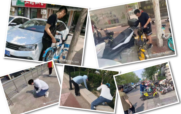 在人来人往的长河公园广场,志愿者对市民不文明行为进行阻拦劝导;人行道上,志愿者来回巡视,将共享车辆摆放整齐,为市民营造更加整齐规范的环境;志愿者还主动帮助工人维护环境卫生、擦拭整理垃圾箱等。