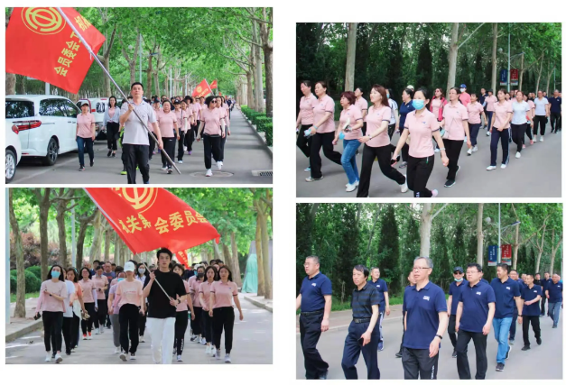 为庆祝中国共产党成立100周年,丰富广大教职工文化体育生活,提高广大教职工的身体素质和健康水平,引导广大教职工学党史、感党恩、听党话、跟党走,5月27日下午,学校工会举行“学党史、感党恩、跟党走”教职工健康健步走活动,校党委书记樊兆杰,校党委委员、工会主席周爱红,校党委委员、副院长殷淑英,校党委委员、纪委书记聂长义,校党委委员、副院长多建民,校党委委员、办公室主任郭士武出席活动,学校各系部负责人,各基层工会人员,共600余名教职工参加活动。