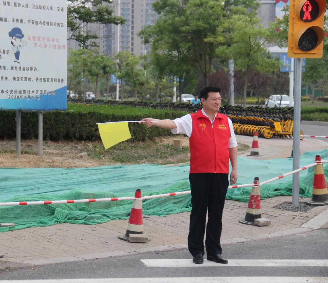 5月31日下午,校党委书记樊兆杰,在校党委委员、办公室主任郭士武的陪同下,带队到长河大道和大学东路交叉路口,开展文明交通劝导志愿服务活动,服务全国文明城市创建。